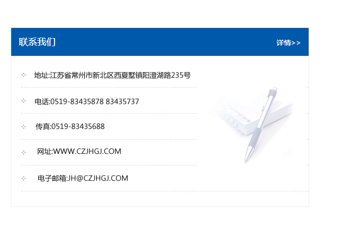 地址:常州市新北區友邦商務大廈1幢16、17層  電話:0519-85101652  傳真:0519-85112595  郵編:213022  網址:www.cz-jiayue_cn.qdrkwl.com  郵箱:xiajifengaa@163.com